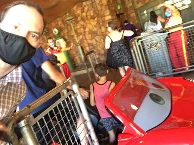 Luigi’s and Mater’s are similar spinny rides and both lots of fun. A life-size Lightning McQueen or Mater interactive car “character” usually parks nearby for guest interaction.