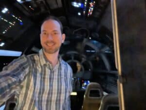 Paul preferred the engineer role as he got a bit of motion sickness as the pilot. 6 people to a run and walking through the Millennium Falcon is one of the best parts of the ride.
